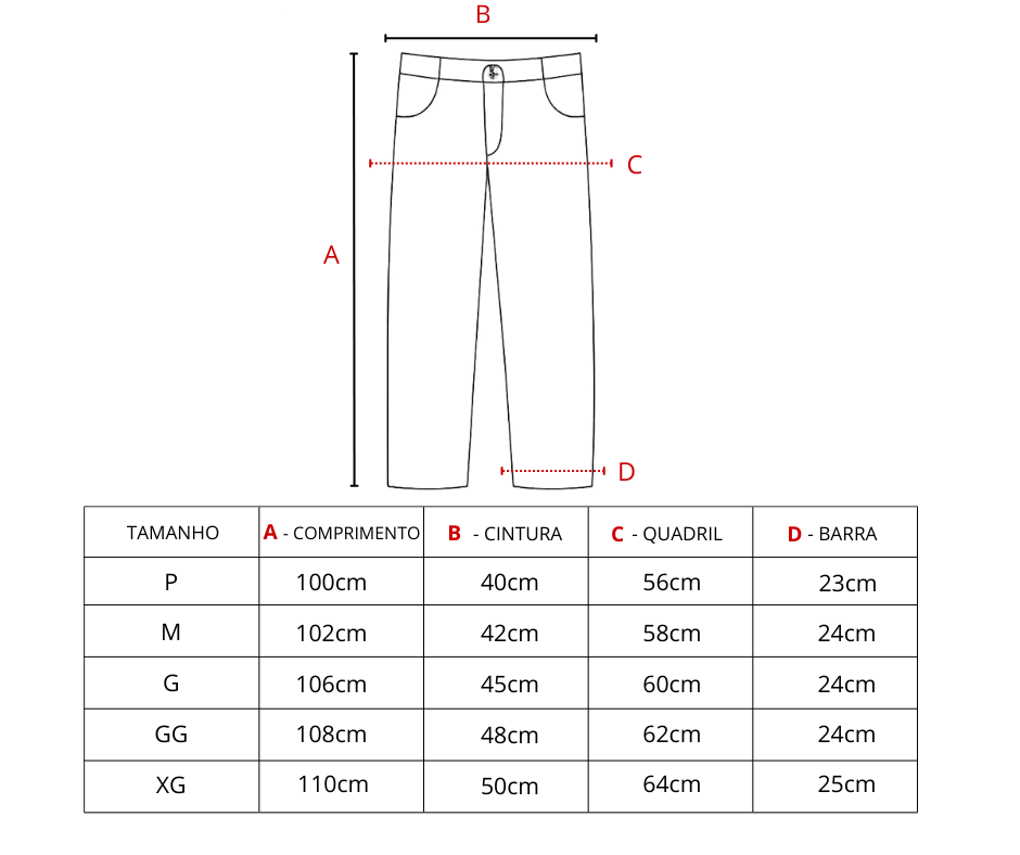 Detalhes: Costura reforçada,bordados no bolso, botão personalizado, zíper metálico , etiqueta de sarja traseira, etiqueta em couro no cós, bolsos 5 pontos e passantes largos para cinto