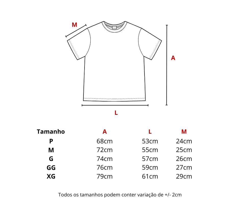 - Material: 100% algodão malha premium